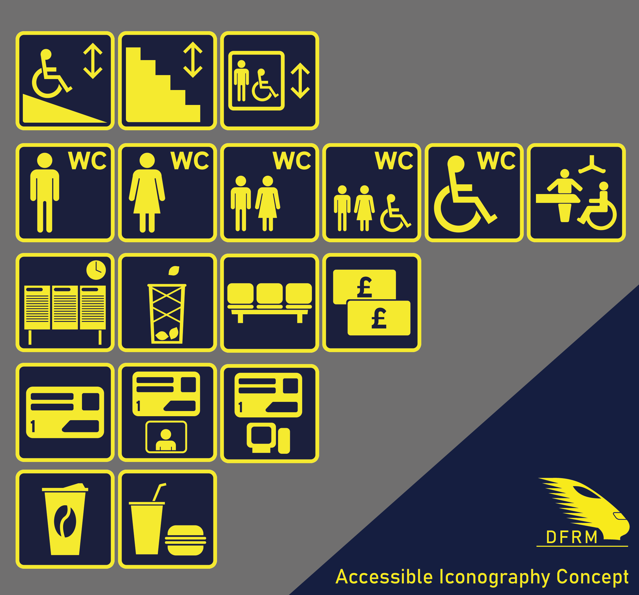 Our accessible maps depict stations and other locations in a clear, easy to read format. High colour contrast and clear, bold, lines outline key features such as platforms, while facilities are highlighted with intuitive icons which are easily understood.