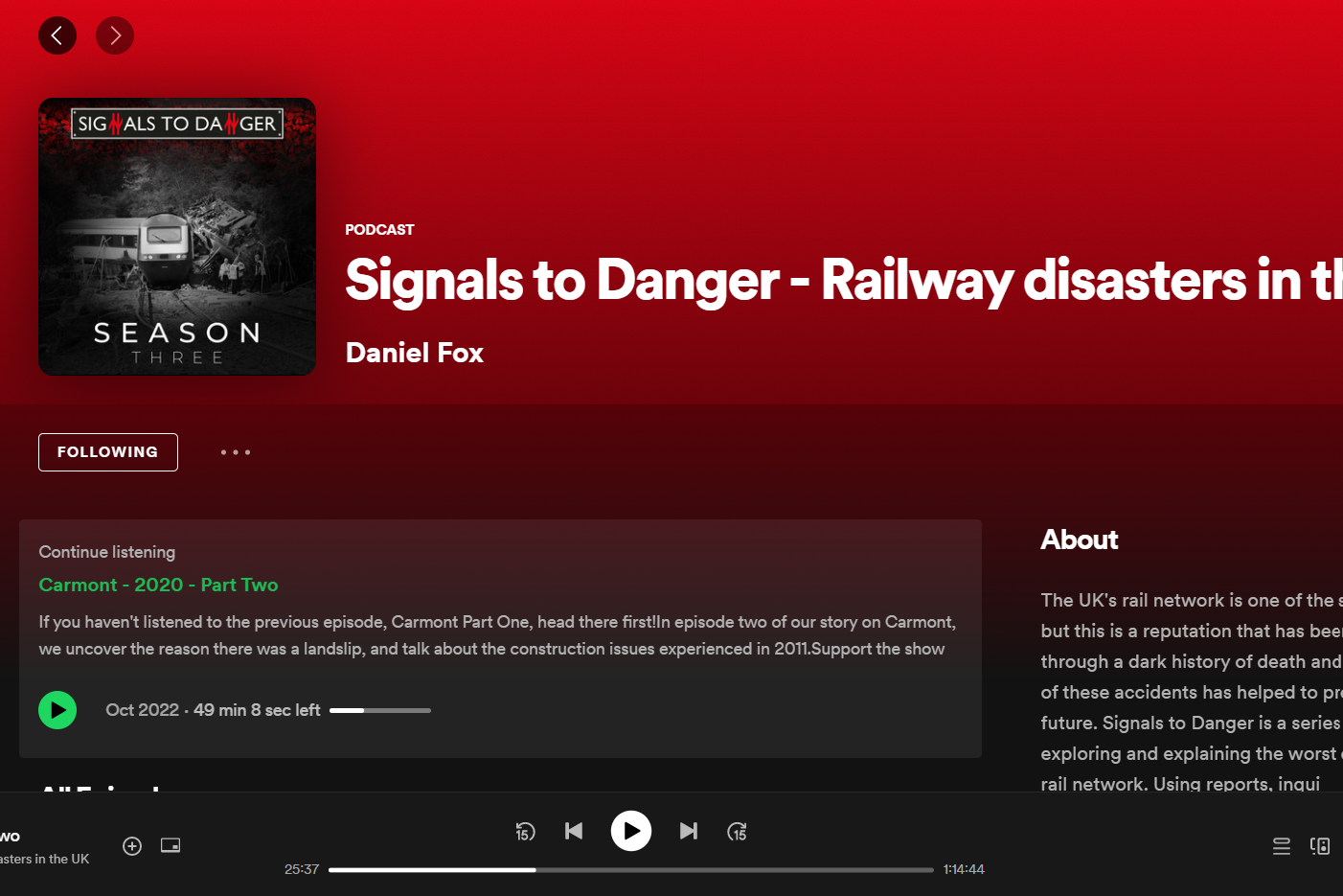 The brief for the podcast was to tell the stories of accidents on the UK Rail Network in a way which hadn't been done previously. To take the complex and often technical language conveyed through official reports, and create something which could be both understood and enjoyed by all listeners. Taking inspiration from television programmes, such as Mayday or Seconds from Disaster, the podcast has succeeded in acheiving this goal, with a regular listenership from across the social spectrum.